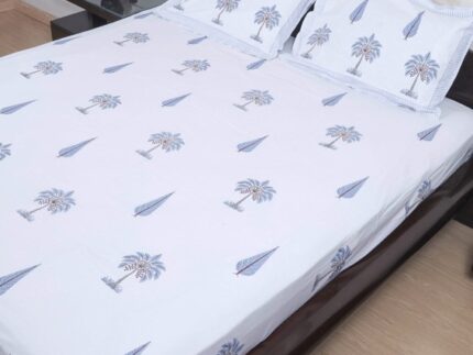 Blue Palm Trees Cotton Bedsheet Set