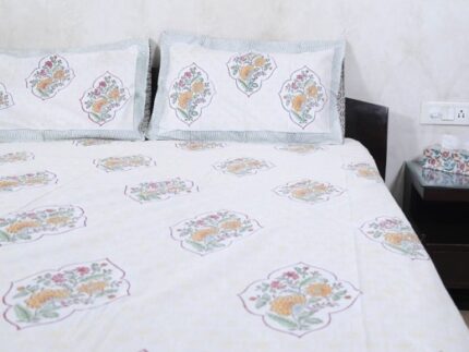 Floral Diamond Jharokha Cotton Bedsheet Set