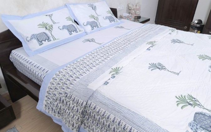 Indulge in comfort and style with our handmade Blue Elephant Quilt, crafted from soft muslin cotton (Mulmul) for a luxurious touch. This reversible quilt features intricate block prints of graceful elephants, adding a unique and artistic charm to any bedroom. Filled with premium cotton, it ensures warmth and coziness all year round. This quilt combines traditional craftsmanship with a modern aesthetic, making it a beautiful addition to your decor or a thoughtful gift.