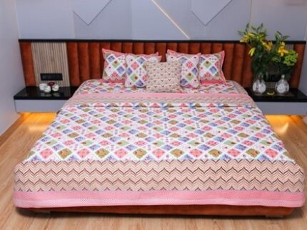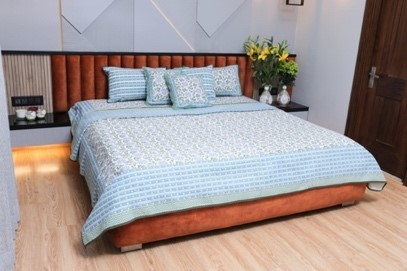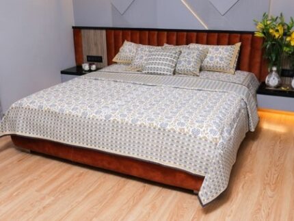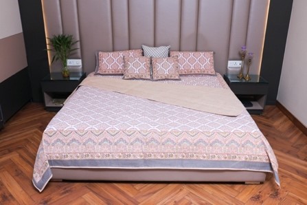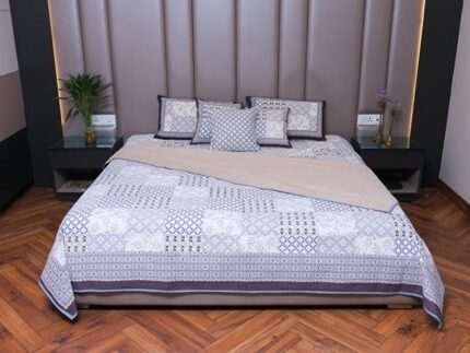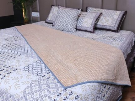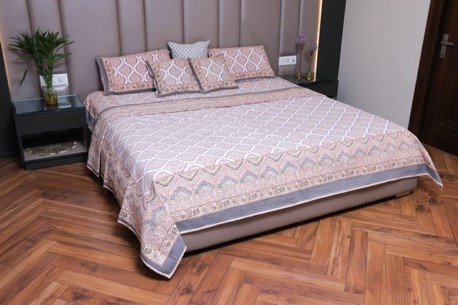 The Cascade Charm Cotton Bed Cover Set brings together an intricate lattice and cascade design in soft hues, creating a sophisticated and elegant bedroom ambiance. This set, crafted from 100% cotton, ensures comfort and durability, providing a luxurious touch to your bedding collection. The coordinated pillow and cushion cover add a seamless finish, making this set a must-have for a cohesive bedroom look