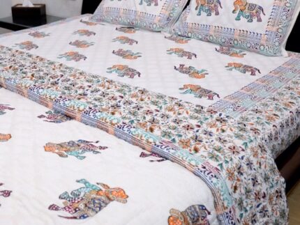 The Cascade Quilt brings a sense of elegance to your bedroom with its intricate patterns and soft hues of peach and grey. The blend of cascading geometric and floral motifs gives a touch of regal charm, making it a perfect addition to any bedroom d?cor. Crafted from premium cotton, this quilt offers warmth and softness for a luxurious sleeping experience.