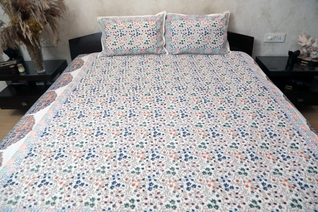 Transform your bedroom into a serene sanctuary with our Colorful Floral Cotton Bedsheet Set. Crafted from premium 100% cotton, this bedsheet combines comfort and durability with an elegant design. The unique geometric floral pattern, inspired by timeless craftsmanship, features rich, bold colors that make a striking visual impact, ideal for those who appreciate cultural artistry.