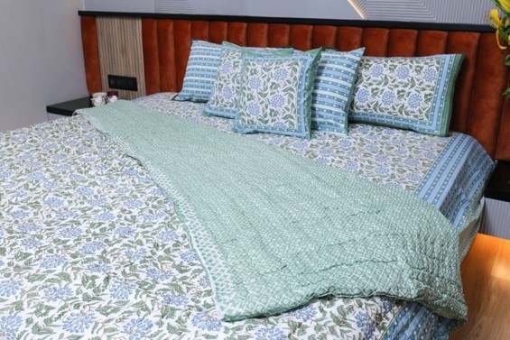 - Design: Intricate heritage-inspired motifs in serene tones of blue and green.