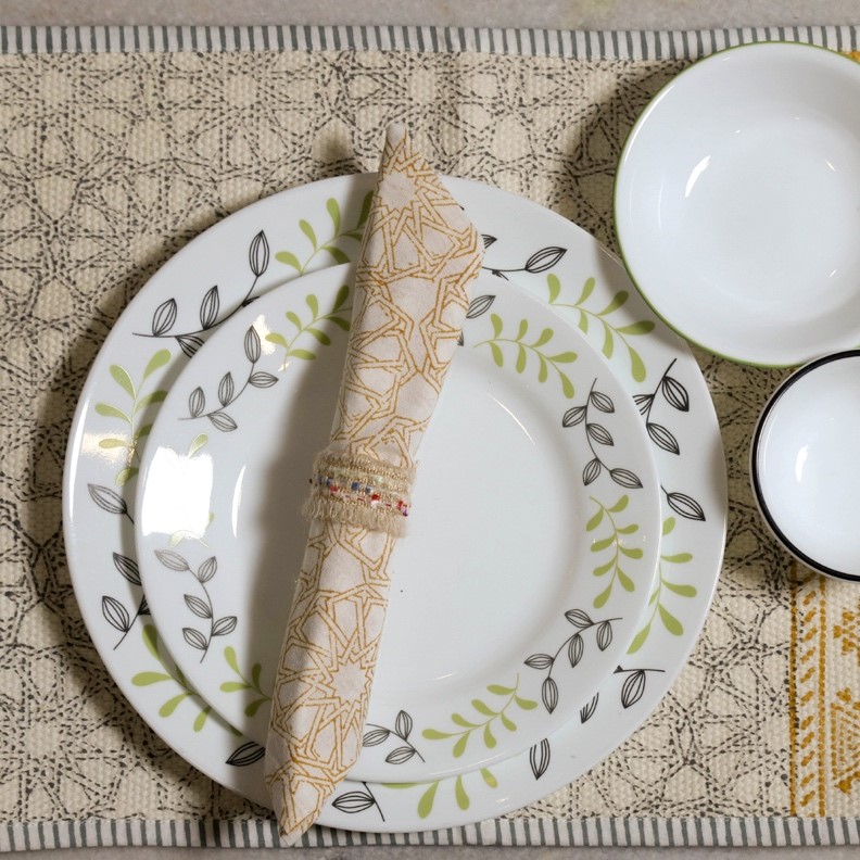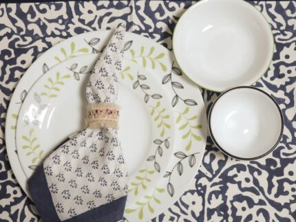 - Design: Contemporary and versatile, featuring coordinated patterns on mats and napkins