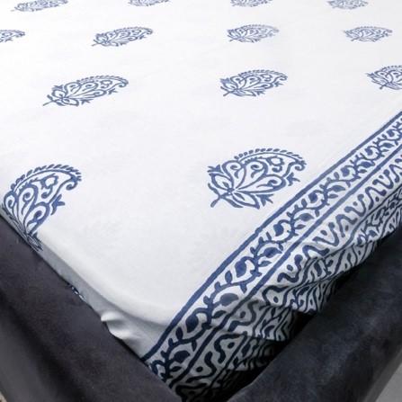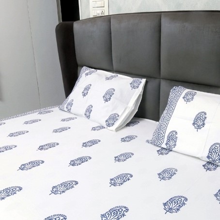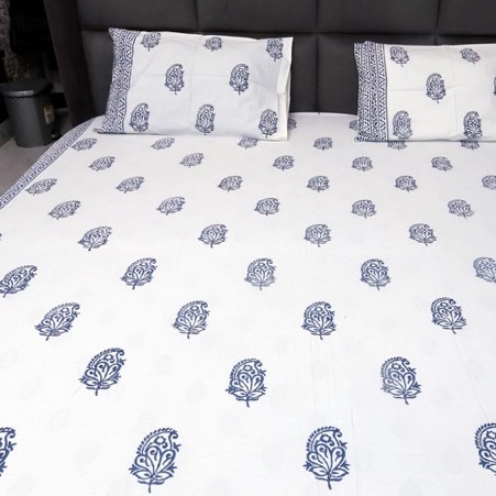 The Indigo Blossom Bedsheet offers a touch of elegance and simplicity with its charming blue floral motifs. Printed on a soft white background, the indigo flowers create a tranquil and refreshing atmosphere, perfect for brightening up your bedroom. This bedsheet combines timeless design with a modern aesthetic.