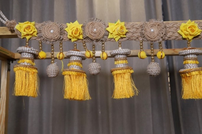 The Majestic morning bandhanwar is a charming, handcrafted d?cor piece inspired by the warm glow of a beautiful sunrise. With its natural jute flowers, bright yellow tassels, and cheerful yellow rose accents, this bandhanwar radiates positivity and warmth. The combination of rustic textures, golden beads, and vibrant tassels makes it ideal for adorning doorways, mantles, or walls, creating a welcoming and festive atmosphere for special occasions or as an everyday decorative element.