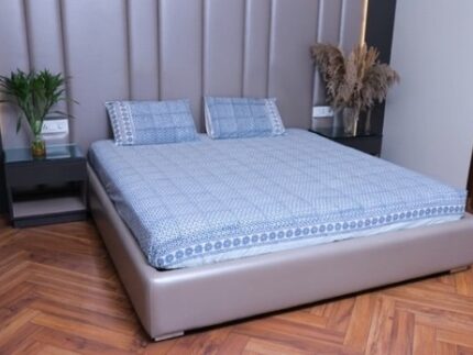 Embrace nature’s beauty with our Peacock Elegance Cotton Bedsheet Set. Featuring a delicate peacock motif in a soothing teal hue, this bedsheet brings a serene and stylish vibe to your bedroom. The subtle peacock feather border on the bedsheet and pillow covers adds an extra layer of sophistication. Crafted from 100% pure cotton, this set promises softness and comfort, perfect for a restful night’s sleep. Complete with two matching pillow covers, it ensures a coordinated and polished look for your bedroom